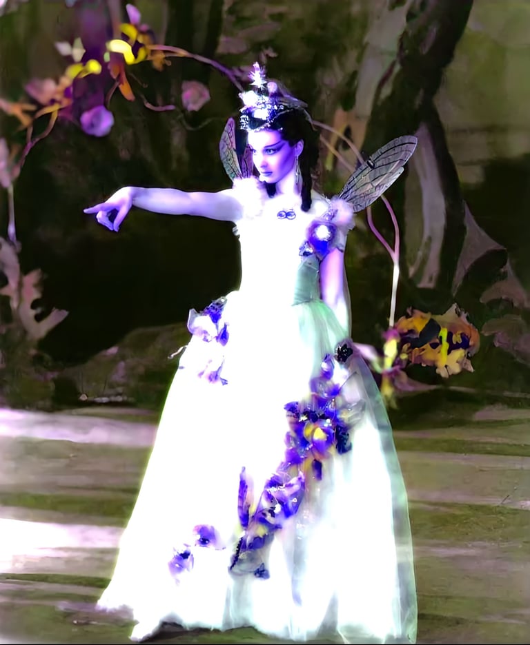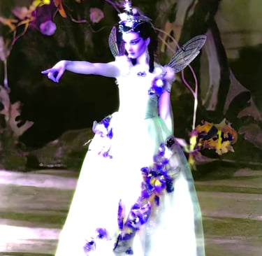 Og slik, i hvirvlende skyer glitterstøv, vindkastene til fe-vinger og mørket fra en stadig voksende skog, leder hun en tropp unge jenter under sin omsorg, som deres fegudmor. Veversker av skjebnen pleide de å bli kalt. Hun vet nøyaktig hva Øyvind trenger, og derfor setter hun og jentene veven i bevegelse.